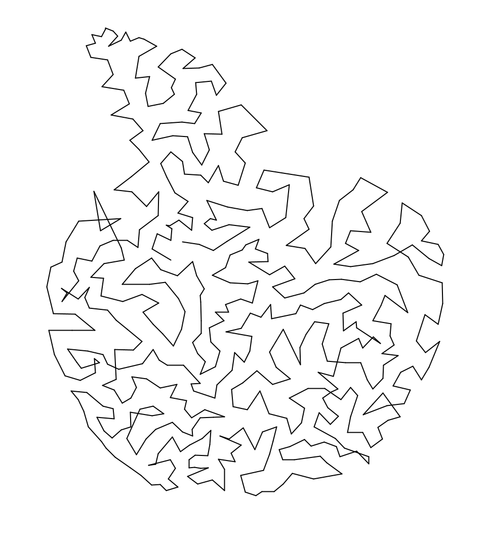 Performance: One obvious flaw with the output is that there is a small number of crossings in the path. This is likely because the TSP algorithm that I use is heuristic, so it doesn’t achieve the true optimal distance. It would likely take much, much longer to generate a truly optimal visitation order, though definitely possible (and probably will be done for the final fabrication step to achieve a more aesthetically pleasing outcome).