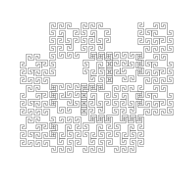 This L-System is also based on the Hilbert curve and uses the “node-replacing” technique to generate a FASS on a 4-by-4 starting grid.