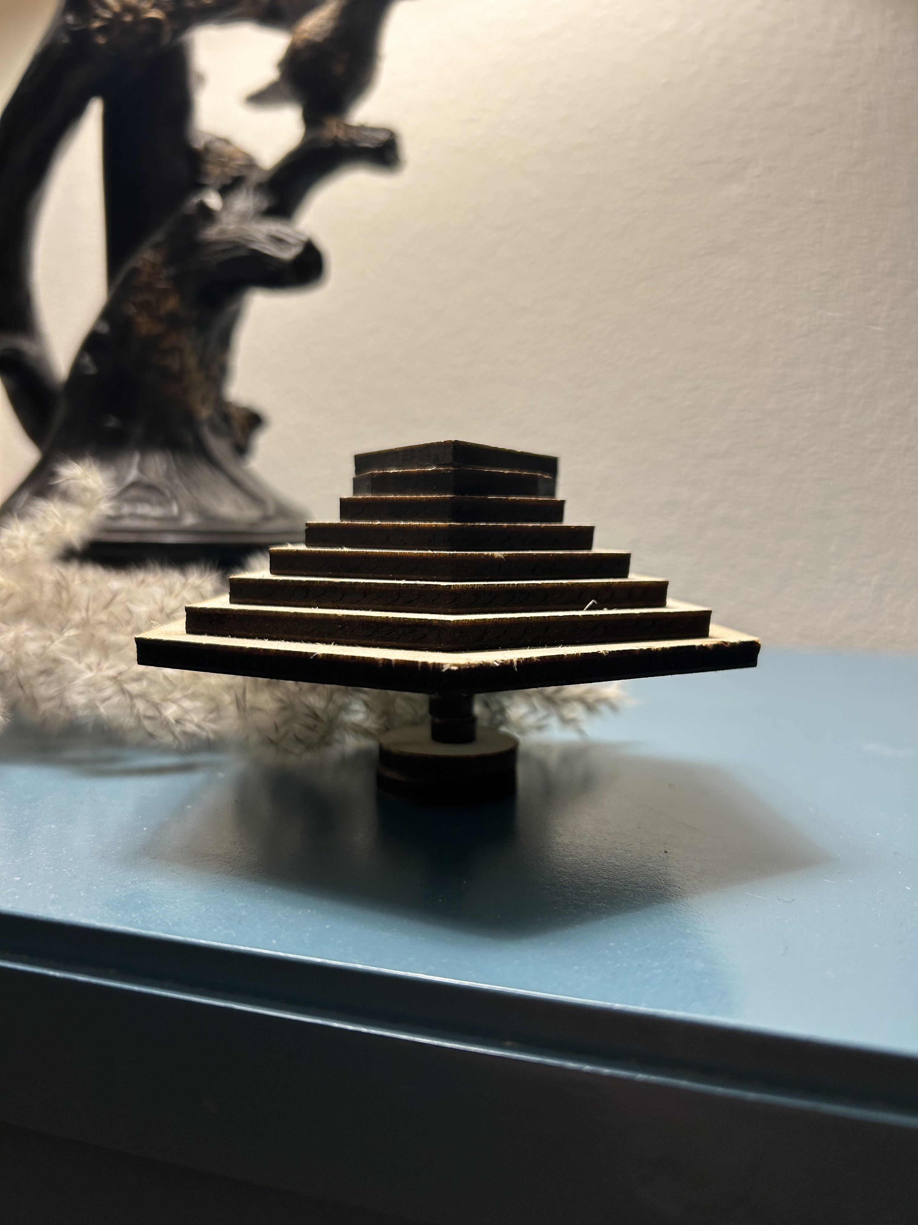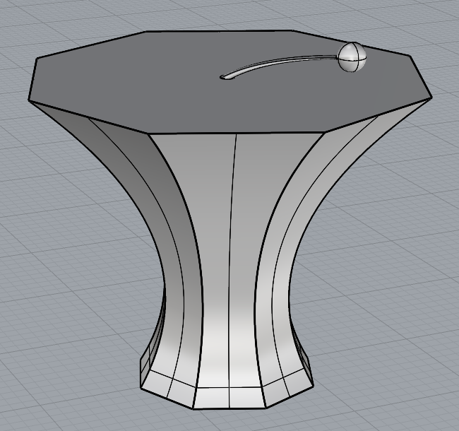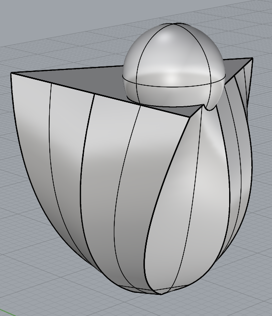 Finally, below is a fabricated object made with the diagonal slicer. Unfortunately, this object does not look much like the actual form that generated it due to an error with the material thickness - probably the material needed to be much thicker, and much lighter than acrylic, to be able to stand on the proper axis.